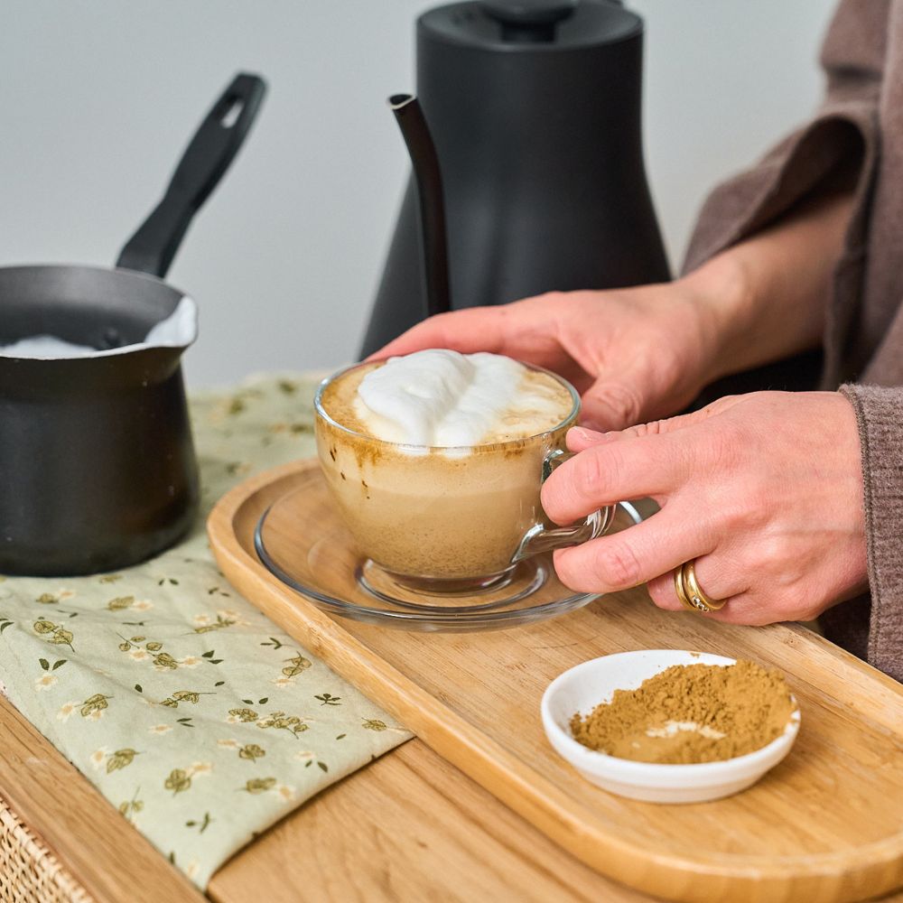 ¡Es muy fácil! Sigue el paso a paso de arriba para hacer un chai latte caliente o frío 👆